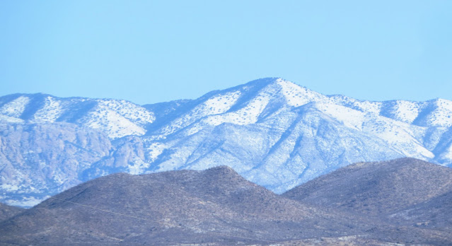 We know it's been snowing in Kingman all morning, but the amount covering the surrounding mountains and the sides of the Interstate is surprising. It's beautiful!